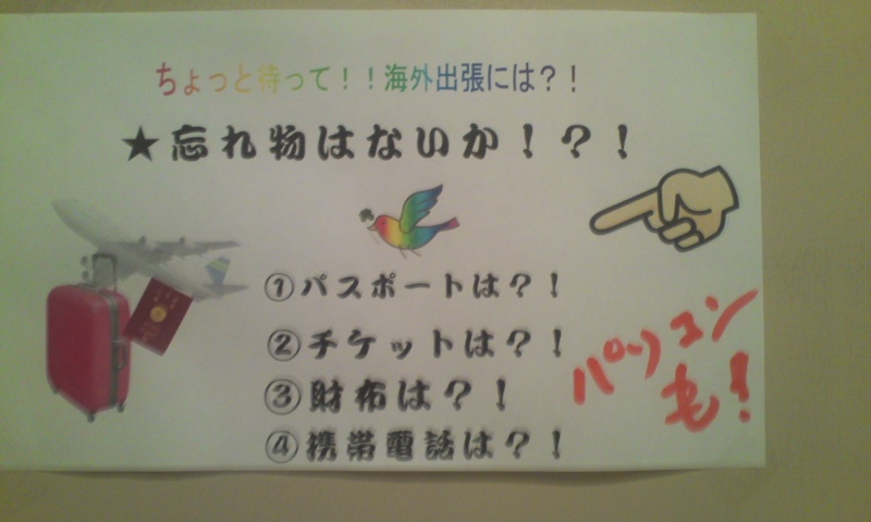 かぴぱら氏は1年のうち半分ぐらいは海外出張。あまりにも長くそういう生活をしているせいか、だんだん国内も海外も区別がなくなってきてしまったらしく、ここ何回かミスが続いています。