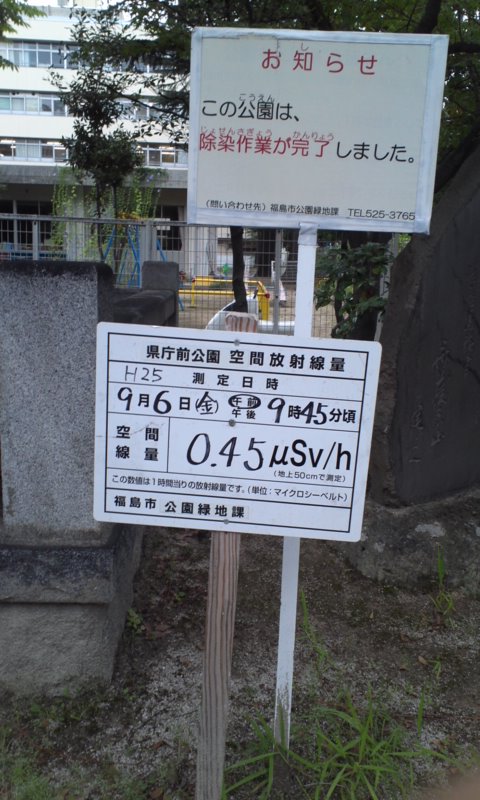 阿武隈川 福島城跡の解説 封鎖された公園 看板にどきり
