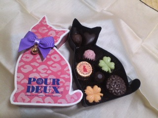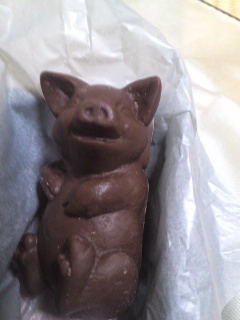 職場の若い女子がチョコ菓子詰め合わせをくれましたし、お友達からもすごく可愛いチョコをいただきました。娘からは笑っちゃうくらいリアルな豚のチョコをもらいました。(共食いしろって?)取引先の担当さんはプロはだしの手作り焼き菓子詰め合わせを下さったし、ランチ屋のAさんもデザートにチョコを添えてくれました。ああ~、甘い物って本当に幸せを運んでくれるんだなあ・・・・。