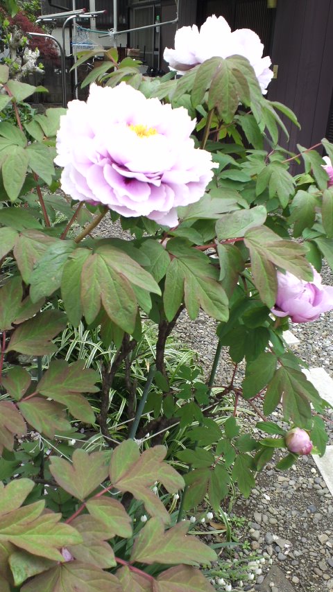 Aさんちのお隣のお庭に牡丹が咲いていました。さすがに百花の王だなあ・・・、ゴージャス。