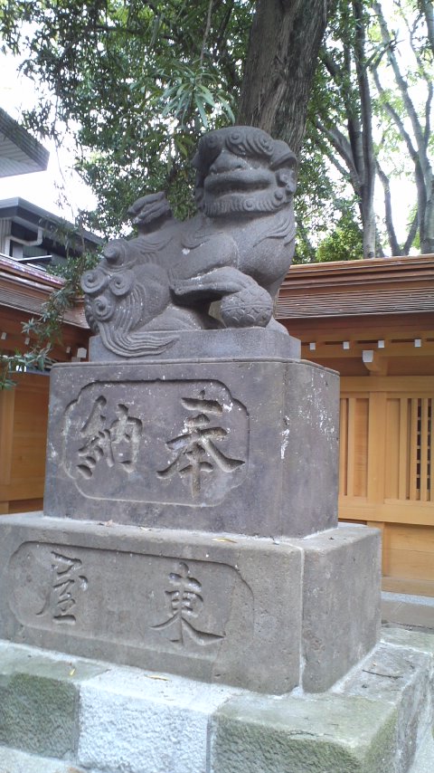 社殿の左側には小さなお社があって、龍神様、お酒の神様、巽の方角を守る神様が祀られています。右側には東照宮と、住吉神社と大鷲神社が合祀された社殿があります。狛犬を撮りたかったのですが、ちょっと暗かったのでやめておきました。