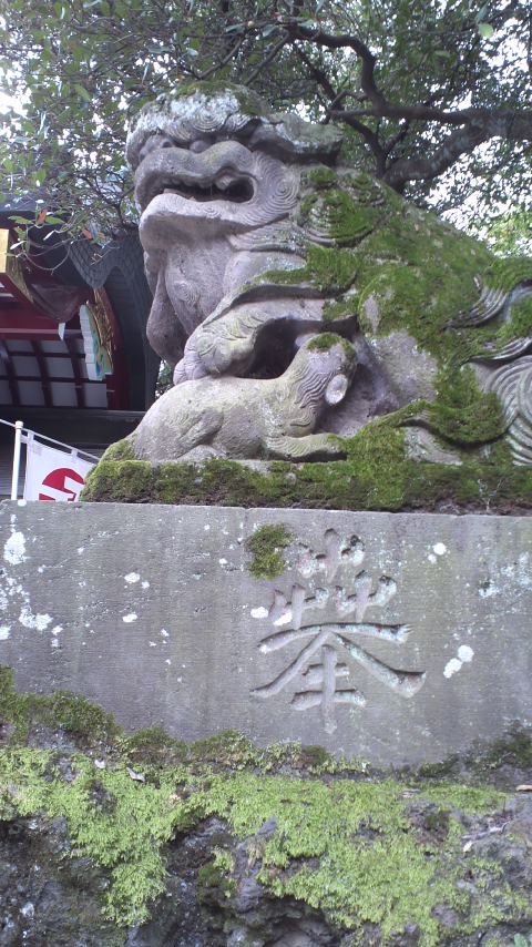 隋神門の前にいる狛犬 なかなか可愛らしいのです。