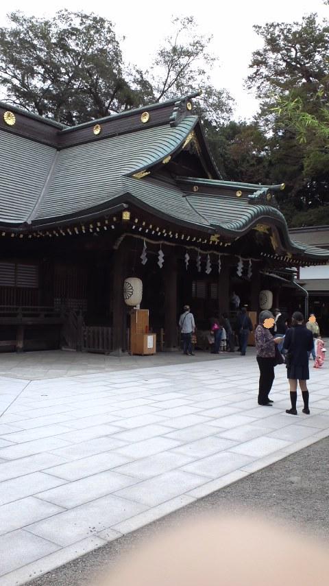拝殿 お宮参りやちょっと早い七五三で御祈祷を受けに来ているご家族連れが拝殿前の広場にたくさんいらっしゃったので、少し待って撮影しました。「のしめ」をかけたお母さん達の晴れやかな顔や、着物を着た小さなお子さんを中にして写真を撮り合うご家族をみて、暖かな気持ちになりました。