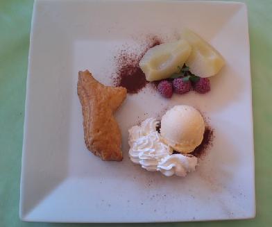 山梨県美のレストランの特別デザート。ムーミンをかたどったパイと彗星に見立てたアイスクリームと生クリームが可愛い~。