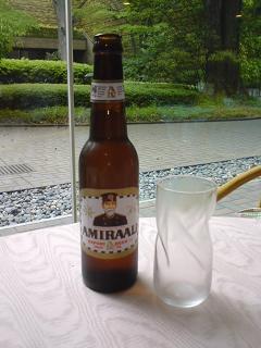 美術館内のレストランでの楽しみは、展覧会のテーマとタイアップした企画メニューです。今回はオランダビールのメニューが出ていたので、ついつい昼間だというのに、オーダーしてしまいました。そして、そのビールと言うのがまあ、面白い事に、東郷平八郎の肖像画がついているのですよ。もうひとつ種類があって、それは明治維新ビールと銘打ち吉田松陰の肖像画がついています。どっちにしようかと悩んだ末、吉田松陰だと、「そこもとは、女子の身で昼間から酒をたしなむとは何事ぞ!」と説教されそうな気がしたので、東郷平八郎の方にしてみました。中身はオランダビールだそうです。なかなかしっかりと味わいのあるビールでした。容量は普通の缶ビールくらいでしょうか。欅の若葉が美しい中庭を眺めつつランチを楽しんだのでした。